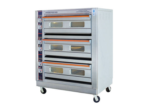 Electric oven are specially desighed for baking bread, cake and western-style pastry. تم تصميم الفرن الكهربائي خصيصًا لخبز الخبز والكعك والمعجنات على الطريقة الغربية. The body is made of brushed superior quality stainless steel. يتكون الجسم من الفولاذ المقاوم للصدأ المصقول عالي الجودة. The oven uses superior quality distant infrared radiant heating tube to heat the food rapidly and uniformly. يستخدم الفرن أنبوب تسخين مشع بعيد تحت الأحمر عالي الجودة لتسخين الطعام بسرعة وبشكل موحد. The tempeature of bottom fire and surface fire can be controlled in a range of room Temperature~300 Degree. يمكن التحكم في درجة حرارة النار السفلية والنار السطحية في نطاق درجة حرارة الغرفة ~ 300 درجة. The required temp. درجة الحرارة المطلوبة. can be set and kept at constant automatically. يمكن ضبطه والحفاظ عليه ثابتًا تلقائيًا. These series electric ovens are ideal and must have equipment for hotels,restaurants, cake factories, bread shops and etc. هذه الأفران الكهربائية من سلسلة هي مثالية ويجب أن تحتوي على معدات للفنادق والمطاعم ومصانع الكيك ومحلات الخبز وغيرها.