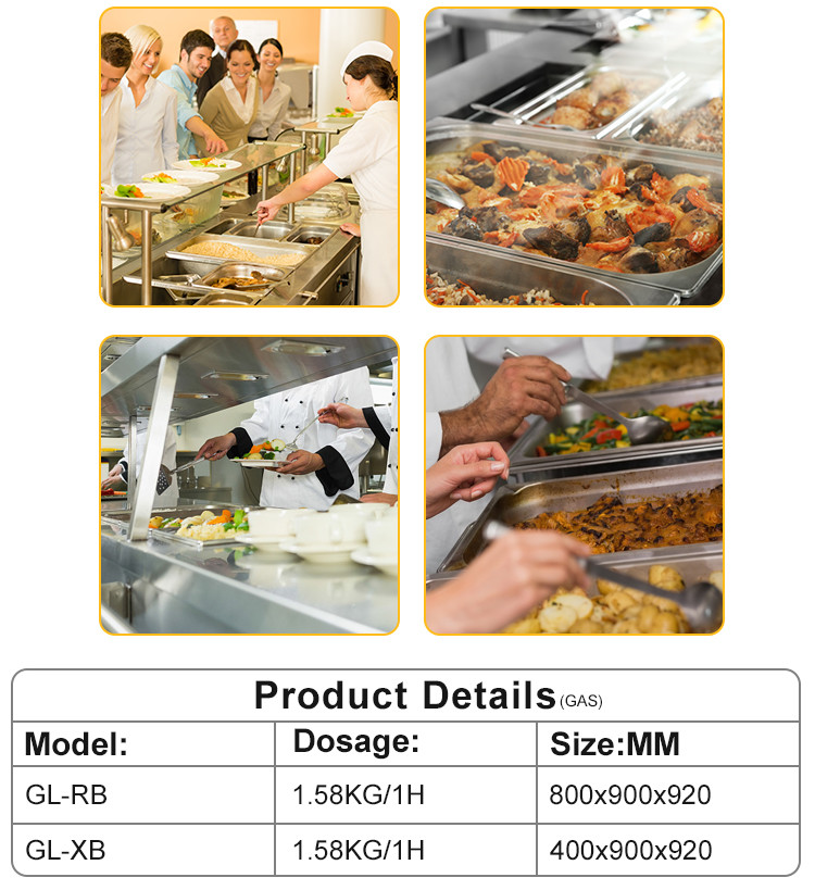 سواء كنت تدير مطعما صغيرا أو شركة طعام كبيرة، غلاد GL-RB غاز Bain Marie مع خزانة هو خيار ممتاز لاحتياجات الطهي الخاصة بك.هذه المعدات الطبخية مصنوعة في الصين مع المواد عالية الجودة ومعتمدة مع CE لضمان السلامة والجودة.