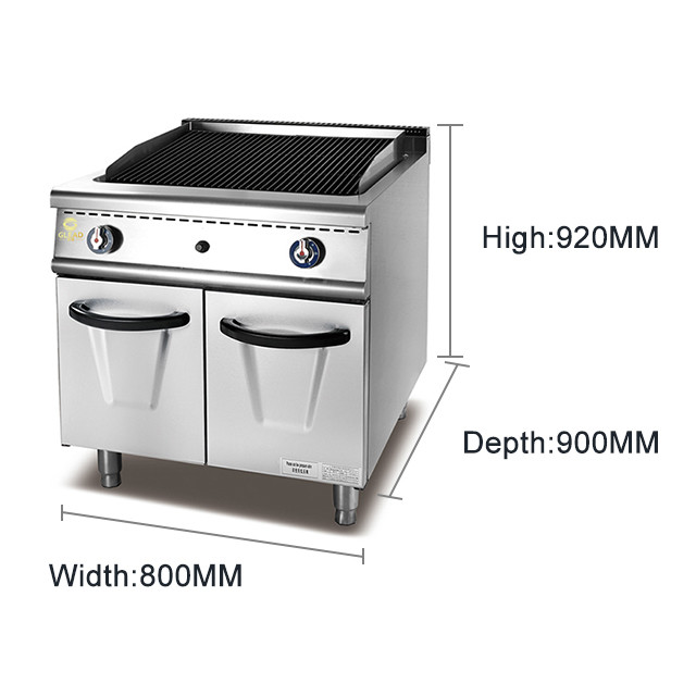 هذه المعدات المطبخية التجارية هي شواية غازية مع مجلس الوزراء. لديها مصدر طاقة 17 للغاز الطبيعي المسال / الغاز الطبيعي مع اتصال غاز R13/4. وهي مصنوعة من الفولاذ المقاوم للصدأ ووزنها 126 كجم.حجم هذه المعدات مطبخ الوجبات السريعة هو 800 × 900 × 850 + 70النموذج هو GL-RH واستهلاك الغاز للغاز الطبيعي المسال هو 1.2/1.76Kg / h. حجم لوحة الشواية هو 686x600mm.